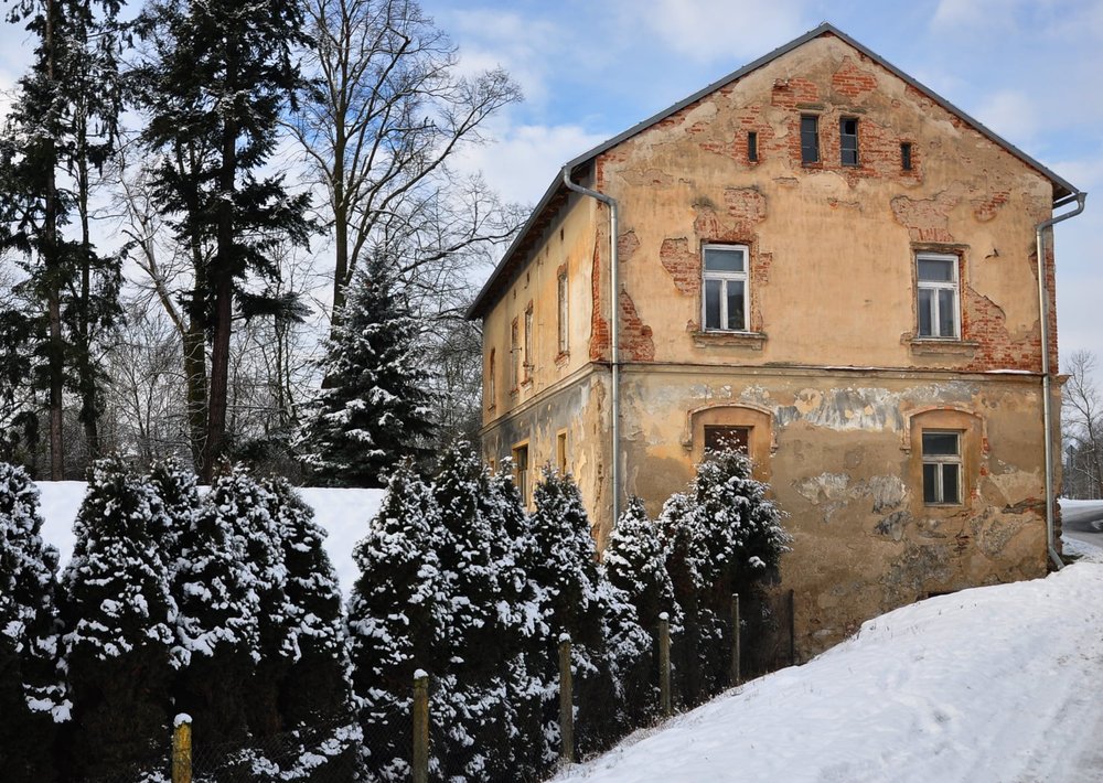 Pohled na hospodářské budovy kláštera od východu. Vlevo budova bývalého klášterního mlýna, o kterém pochází první zprávy už z roku 1543. Mlynáři zde však často zápasili s nedostatkem vody a mlýn byl nakonec v říjnu 1843 zrušen. Roku 1906 byla pak budova zvýšena o další patro. Foto z roku 1943.